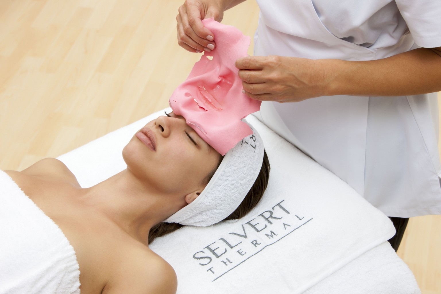 Geben Sie den Inhalt beider Beutel (Gel und Pulver) in eine Schüssel. Vermischen Sie die beiden Phasen. Auf Hals, Gesicht und Dekolleté auftragen. Sie können auch die Augen und Lippen bedecken. 20 Minuten einwirken lassen und dann in einem Stück entfernen.