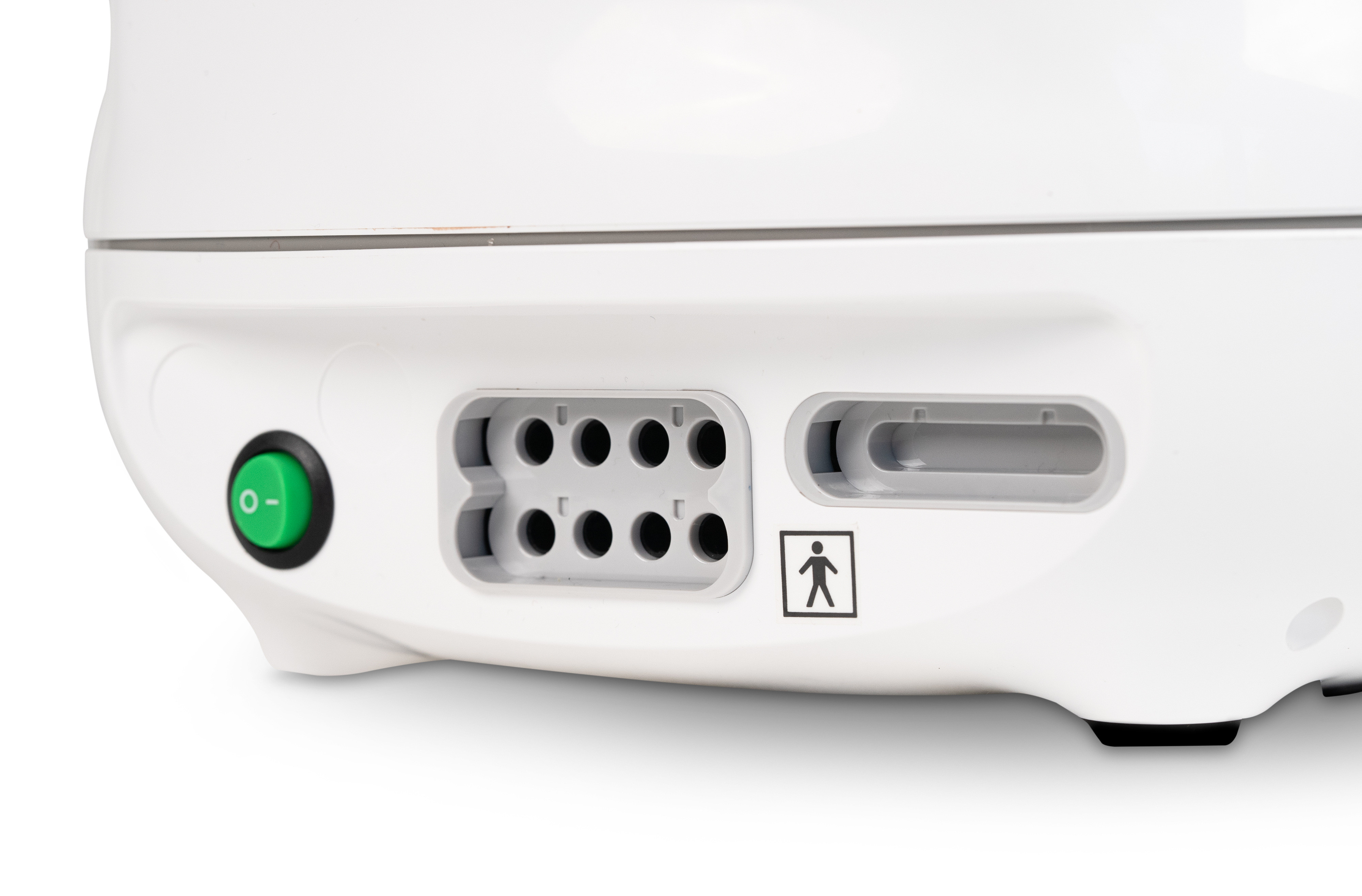 Der kräftige Kompressor hat eine Druckluftstärke von bis zu 200 mmHg. Das gibt Ihnen die Möglichkeit, bis zu 3 Manschetten gleichzeitig anzuschließen! Bei der Anwendung von nur 2 Manschetten ist der dritte Zugang natürlich auch einfach zu verschließen.