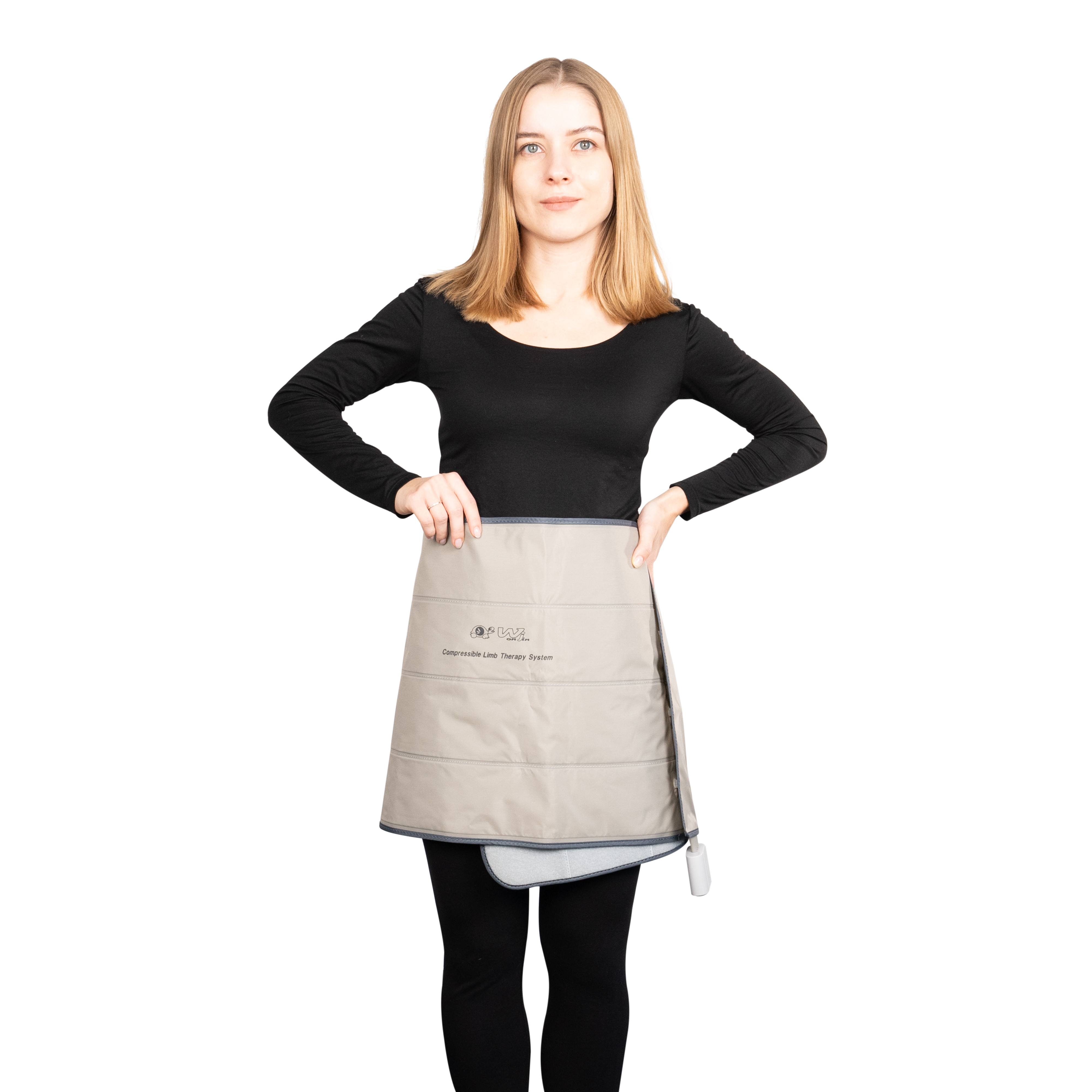 Mit dem Q2200 Lymphdrainage-Heimgerät holen Sie sich das angenehme Gefühl einer professionellen Lymphdrainage Behandlung nach Hause! Die Beinmanschetten sind besonders anpassungsfähig und enthalten je 4 flexible Luftkammern für eine schonende Behandlung der Beine. Dieses Produkt ist anders als andere Hersteller speziell für große Größen ausgelegt (siehe Beispielfoto).